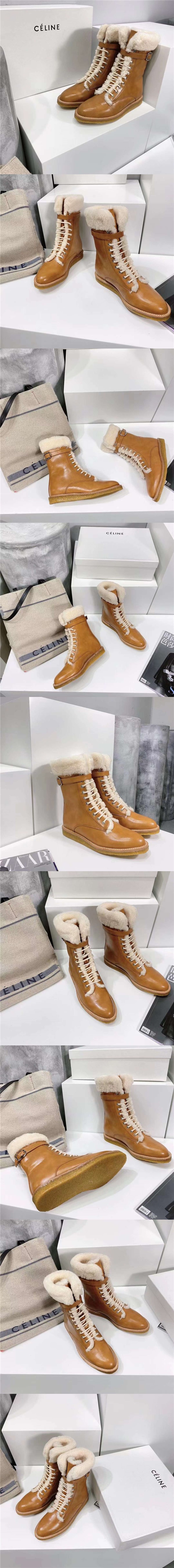 賽琳Celine2021冬季羊羔毛翻領短靴,冬季收官鉅作!質感非常高級!卷毛 保暖和時尚結合,簡直無敵瞭#010