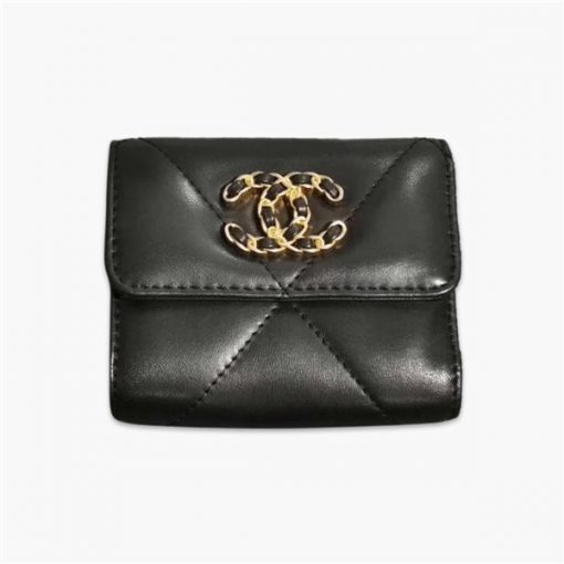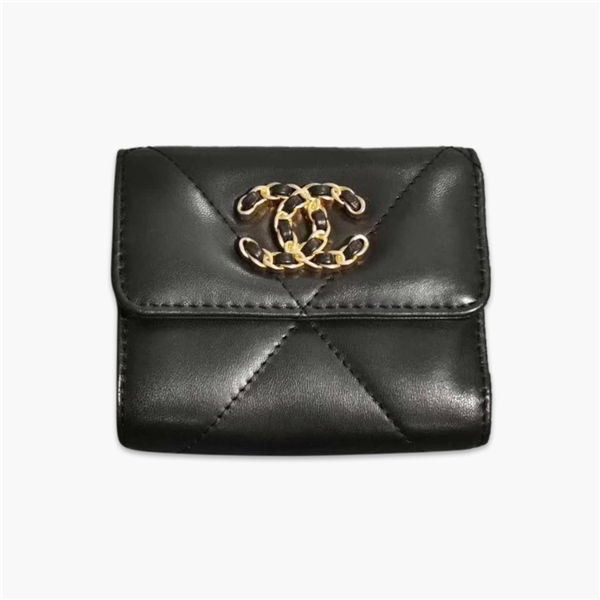 高仿香奈兒/Chanel 19系列短款錢夾,非?常重磅的標?志?性第?一系列,超?大菱格紋,皮穿鏈雙C扣,經典不過時,款號:AP0794