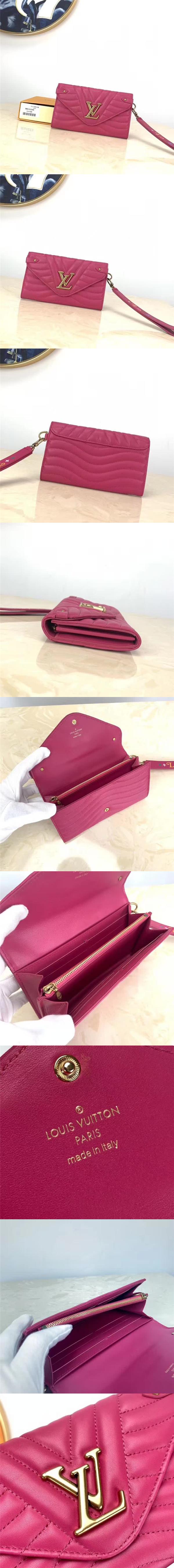 路易威登/LV New Wave 長款錢夾,選用滑面小牛皮制作,綴以獨特的絎縫波浪圖案,內部空間寬敞,設有多個夾層及口袋,可當手拿包使用,款號:M63298【編號】M63298#D518【顏色】如圖所示【尺寸】19cm X 10.5cm X 2cm【規格】翻蓋開合2個鈔票隔層1個拉鏈袋1個側夾層8個卡槽可拆卸手腕帶【附屬品】防塵袋