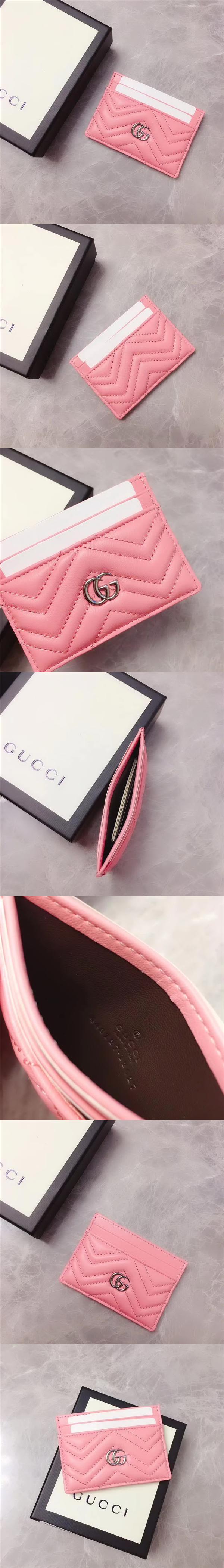 古馳/Gucci Marmont卡夾,采用小牛皮材質精心裁制而成,盛夏的焦點,裝飾極具辨識性的GG細節,是雙G相連最經典的演繹,甜美時尚,款號:443127【編號】443127#G065【顏色】粉色【尺寸】10 X 7 cm【規格】皮革襯裡1個夾層4個卡槽【附屬品】防塵袋