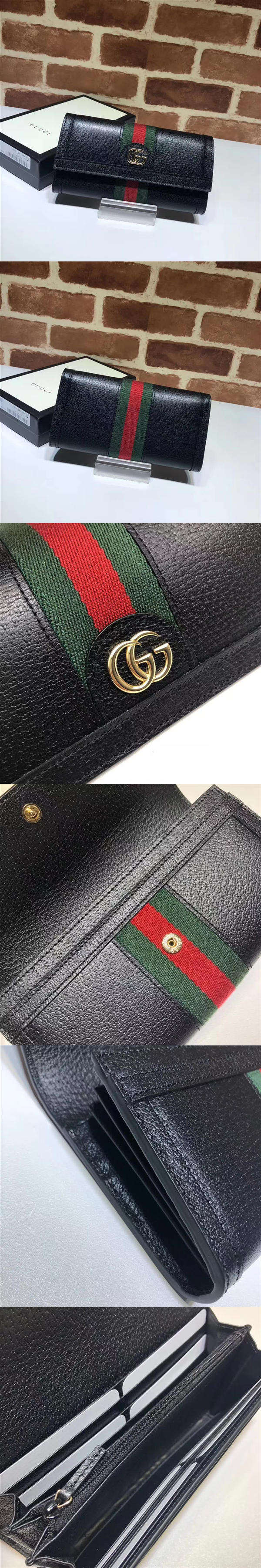 古馳/Gucci Ophidia 系列長款錢夾,選用細膩的織紋皮革精心裁制,巧妙糅合品牌的標志性雙 G 細節和條紋織帶,以經典搭配呼應品牌本源,以此向該系列的復古風范致敬,款號:523153【編號】523153#G075【顏色】黑色【尺寸】19 X 10 X 3.5 cm【規格】翻蓋開合2個鈔票隔層1個拉鏈袋1個側貼袋12個卡槽【附屬品】防塵袋