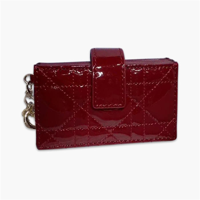迪奧/Dior 卡包,選用漆皮材質小牛皮精心裁制藤?格紋,飾有品牌標志字母吊墜,可放?大?量名片,銀行?卡,完?全符合?日常需求【編號】S0074#D301【顏色】紅色【尺寸】10.5 X 6 X 3 cm【規格】翻帶摁扣開合織物襯裡5個隔層【附屬品】防塵袋