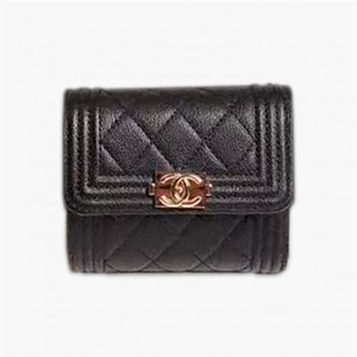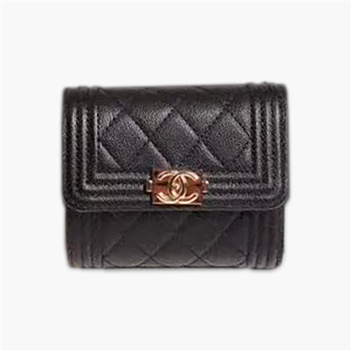 香奈兒/Chanel 短款錢夾,選用顆粒紋小牛皮裁制而成,亮金色金屬配件,內部明確分隔設計,款號:A81996【編號】A81996#C025【顏色】黑色【尺寸】10.5 X 9.5 X 3 cm【規格】雙C徽標翻蓋開合2個鈔票隔層2個卡槽1個翻蓋零錢袋【附屬品】防塵袋