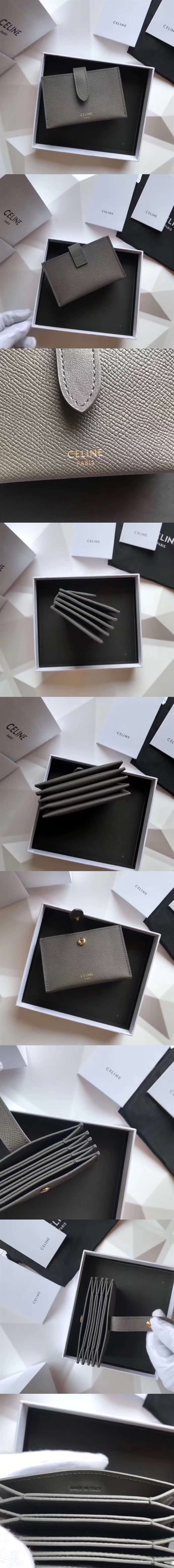 賽琳/Celine 卡夾,選用粒面小牛皮裁制而成,裡外全皮,按扣束帶鎖閉,角撐隔層【編號】C025【顏色】灰色【尺寸】11 X 7 cm【規格】按扣束帶鎖閉皮革內襯5個角撐隔層【附屬品】防塵袋