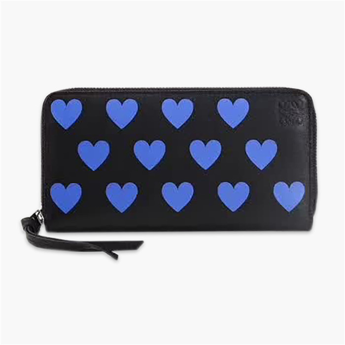 羅意威/Loewe 長款錢夾,選用經典小牛皮精制而成,彩印紫色桃心運用皮革鑲嵌工藝粘貼,閃耀在黑色包身上,宛如群星璀璨的夜空,完美演繹精湛工藝,款號:281703【編號】281703#C025【顏色】黑色【尺寸】19 X 11 X 2.5cm【規格】拉鏈開合2個鈔票隔層8個卡槽1個拉鏈袋2個側貼袋【附屬品】防塵袋