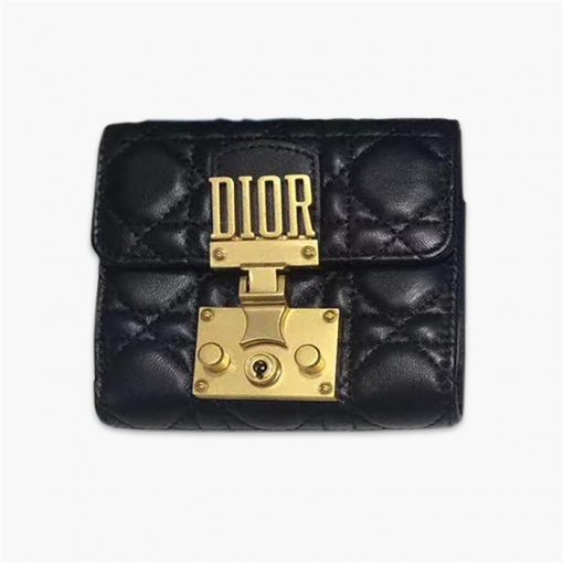 迪奧/Dior 短款錢夾,選用柔軟的綿羊皮刺繡藤格紋,飾有品牌logo鎖扣,款號:S2009【編號】S2009#C025【顏色】黑色【尺寸】11.5 X 10 X 2 cm【規格】翻蓋鎖扣2個鈔票隔層6個卡槽2個側貼袋翻蓋鎖扣零錢袋【附屬品】防塵袋