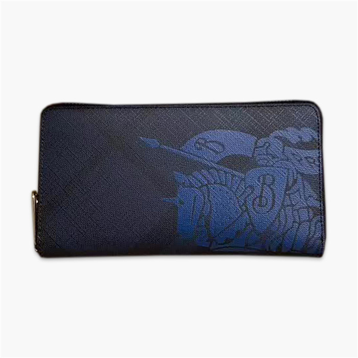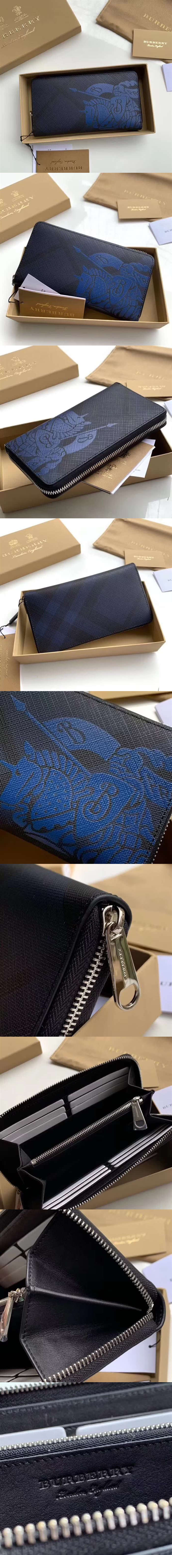 高仿巴寶利Burberry 拉鏈錢夾,選用煙熏格子搭配粒面小牛皮,飾以格紋馬術騎士圖案 ,款號:80060741