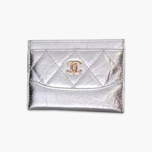 香奈兒Chanel 卡夾,選用柔軟裂紋小牛皮,絎縫菱格紋,精致耐磨,嬌小容易收納,款號:84386【編號】84386#H028【顏色】銀色【尺寸】11 x 7.5 cm 【規格】雙C徽標金色金屬件織物裡襯3個卡槽中間夾層【附屬品】防塵袋