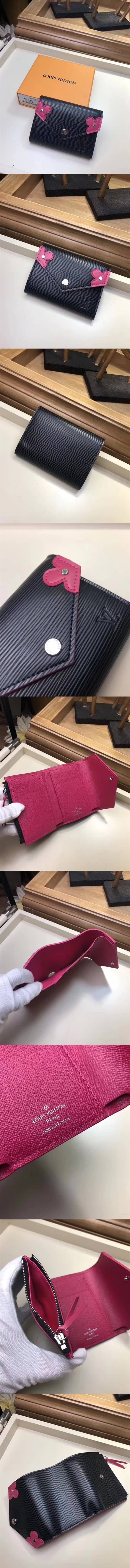 路易威登LV VICTORINE 錢夾,由Epi皮革裁制而成,四角處飾有對比色Monogram Flower圖案,與古董旅行箱異曲同工的細節元素,簡約的信封式錢夾造型以小巧尺寸匯集眾多便利元素,款號:M62980【編號】M62980#D518【顏色】黑/玫紅【尺寸】12cm(長)X9.5cm(高)X1.5cm(寬)【規格】銀色金屬件翻蓋按扣開合1個鈔票隔層1個拉鏈袋6個卡槽2個側貼袋【附屬品】防塵袋