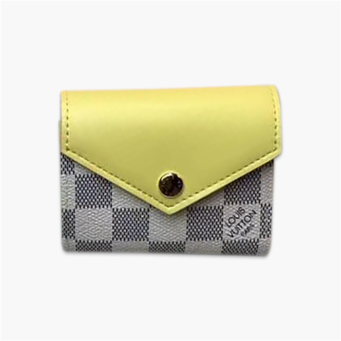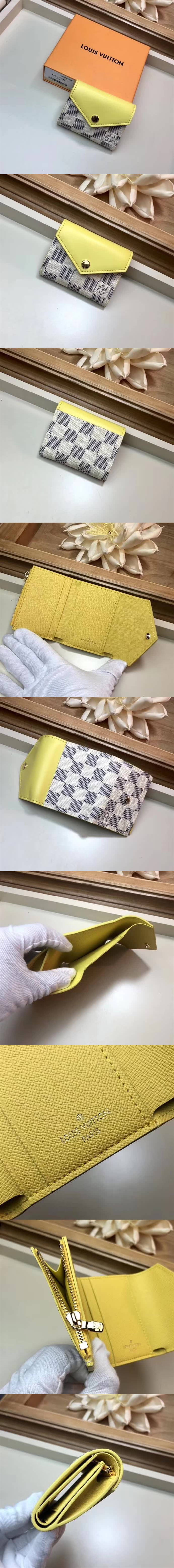 路易威登LV ZOE 錢夾,融合 Damier Azur 帆佈與彩色調皮革勾勒信封式構型,翻蓋鑲綴金色按扣,外形小巧,可輕松裝入小手袋,手拿包或口袋中,款號:N60220【編號】N60220#D518【顏色】白格/黃色【尺寸】9.5cm(長)X7.5cm(高)X3cm(寬)【規格】按扣開合1個鈔票隔層1個拉鏈袋4個卡槽外部貼袋【附屬品】防塵袋