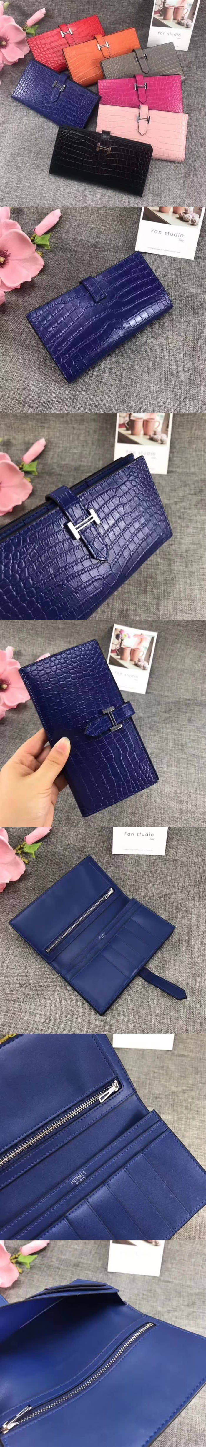 愛馬仕/Hermes 錢夾,采用鱷魚紋小牛皮精心裁制,飾以“H”鎖扣,手感柔軟,油邊平直順滑,易搭又好看,款號:5123【編號】5123#H188【顏色】藍色【尺寸】17.5cm(長)X9cm(高)【規格】‘H’鎖扣徽標銀色五金配件1個拉鏈袋1個鈔票隔層5個卡槽2個側貼袋【附屬品】防塵袋