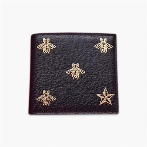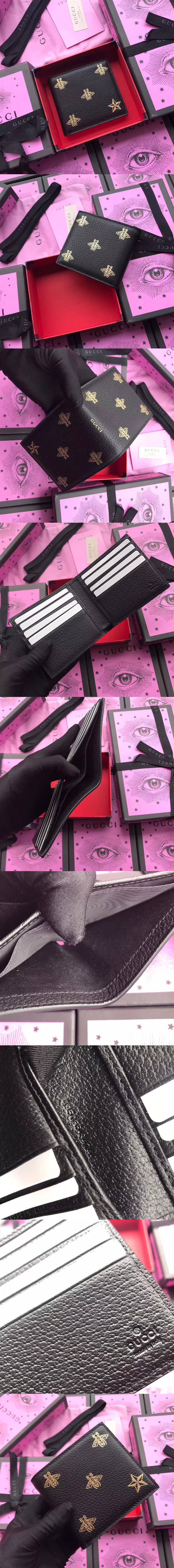 古馳Gucci 對折短夾,采用頭層牛皮精制而成,點綴品牌標識蜜蜂,星星印花,精美奢華,款號:495055【編號】495055#C112【顏色】黑色【尺寸】12cm(長)x9.5cm(高)【規格】蜜蜂,星星印花標識2個鈔票隔層2個側貼袋8個卡槽【附屬品】防塵袋