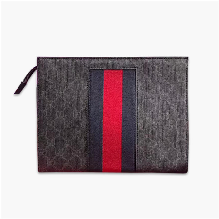 古馳Gucci 手拿包,采用高級人造帆佈,飾以最具辨識性的兩種標志,GG圖案和藍紅藍織帶精心搭配制作,款號:475316【編號】475316#C112【顏色】灰色【尺寸】25.5cm(長)x19.5cm(高)x 5.5cm(寬)【規格】銀色五金配件藍紅藍織帶織物裡襯1個平面口袋【附屬品】防塵袋