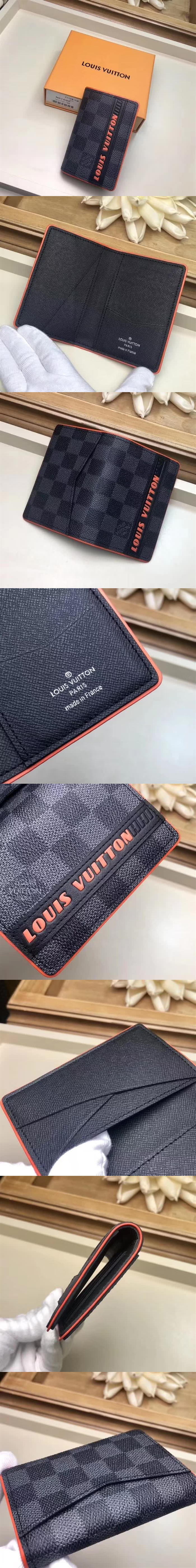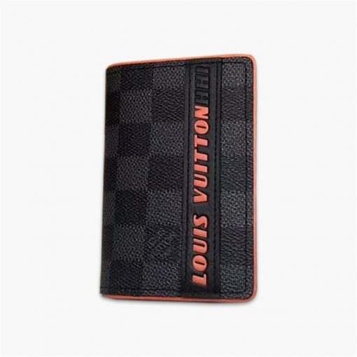 路易威登/LV 錢夾,Damier Cobalt Race 帆佈賦予此款口袋錢夾以競速激情,橙色細節與路易威登標識釋放動感活力,款號:M61696【編號】M61696#D518【顏色】黑灰色【尺寸】8cm(長)X11cm(高)X1cm(寬)【規格】塗層帆佈牛皮飾邊牛皮內襯5 個內袋外側口袋3 個卡槽【附屬品】防塵袋
