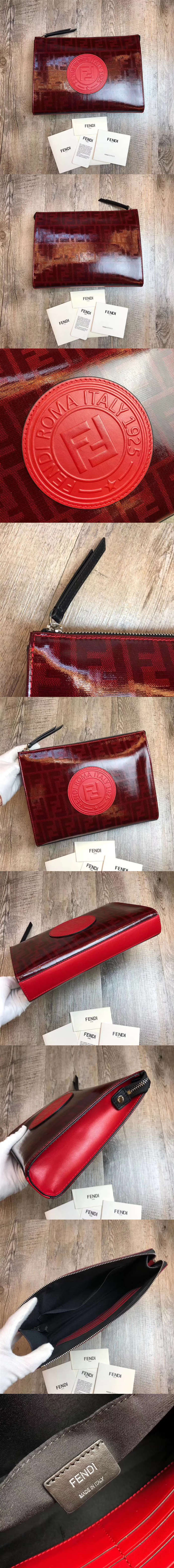 芬迪/Fendi 手包,采用釉光佈料材質,飾有提花FF圖案,定制化Fendi Stamp皮革貼片,超級有型,款號:8N0149【編號】8N0149#A359【顏色】紅色【尺寸】28cm(長)X20(高)X5(寬)【規格】Fendi燙印徽標銀色五金配件棉麻裡襯1個平面口袋8個卡槽【附屬品】防塵袋