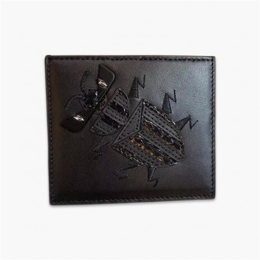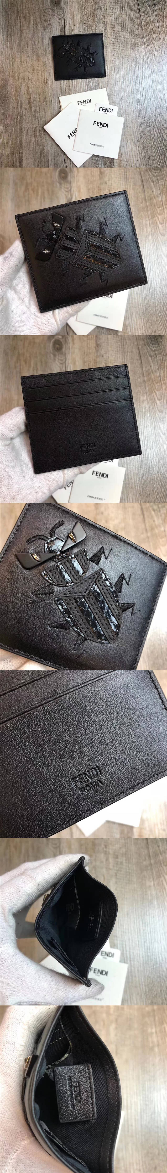 芬迪/Fendi 卡夾,采用小牛皮制成,同色系刺繡 BAG BUGS 主題圖案,搭配蛇皮紋嵌件,綴滿鈀金屬細節的眼睛圖案,款號:7M0164【編號】7M0164#A359【顏色】黑色【尺寸】10.5cm(長)X8(高)【規格】Fendi燙印徽標1個中間袋3個卡槽【附屬品】防塵袋