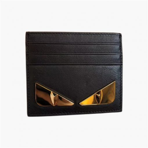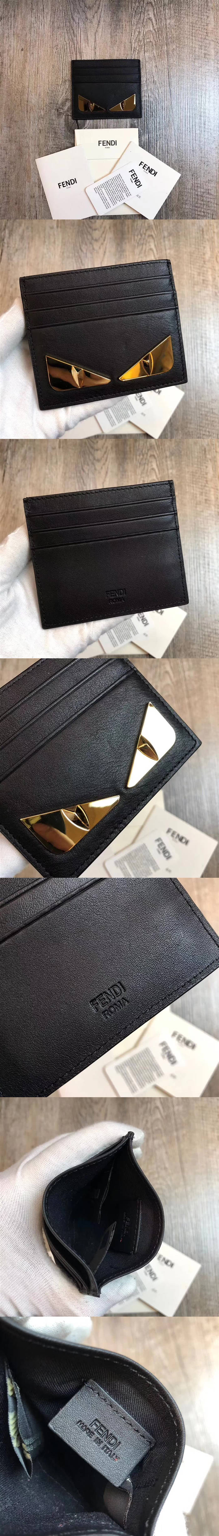 芬迪/Fendi 卡夾,采用小牛皮制成,五金呈現Bag Bugs眼睛鑲飾,款號:7M0164【編號】7M0164#A359【顏色】黑色金眼【尺寸】10.5cm(長)X8(高)【規格】Fendi燙印徽標1個中間袋6個卡槽【附屬品】防塵袋