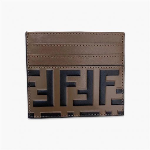 芬迪/Fendi 卡夾,采用小牛皮制成,黑色手繪凸紋 FF 印花圖案,款號:7M0164【編號】7M0164#A359【顏色】棕色【尺寸】10.5cm(長)X8(高)【規格】Fendi燙印徽標1個中間袋6個卡槽【附屬品】防塵袋