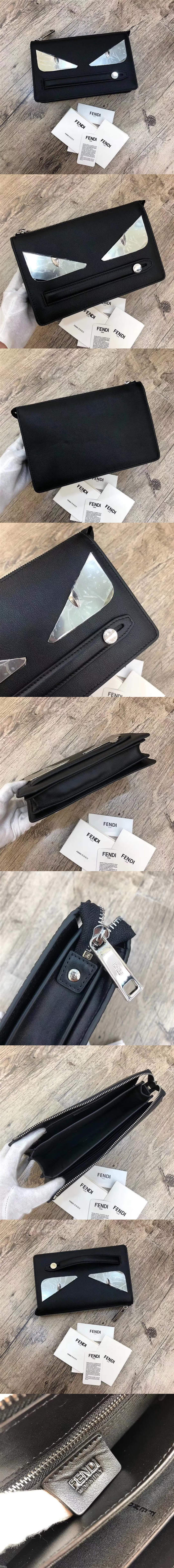 芬迪/Fendi 手包,采用小牛皮材質,飾以金屬BAG BUGS眼睛圖案和同色系鑲邊,手把飾有金屬鈕扣,超級有型,款號:7VA350【編號】7VA350#A359【顏色】黑色【尺寸】24cm(長)X15(高)X3(寬)【規格】Fendi燙印徽標銀色五金配件3個隔層1個拉鏈口袋8個卡槽【附屬品】防塵袋