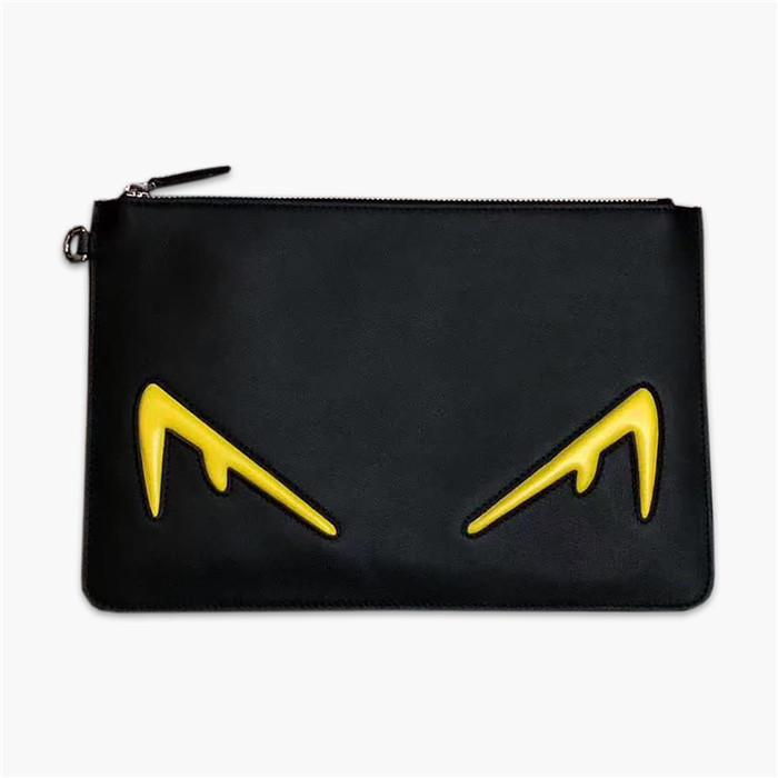 芬迪/Fendi 手包,采用小牛皮材質,飾有黃色凸紋壓花BAG BUGS眼睛,款號:7N0078【編號】7N0078#A359【顏色】黑色【尺寸】30cm(長)X20(高)【規格】Fendi燙印徽標銀色五金配件可拆卸手腕帶棉麻裡襯【附屬品】防塵袋