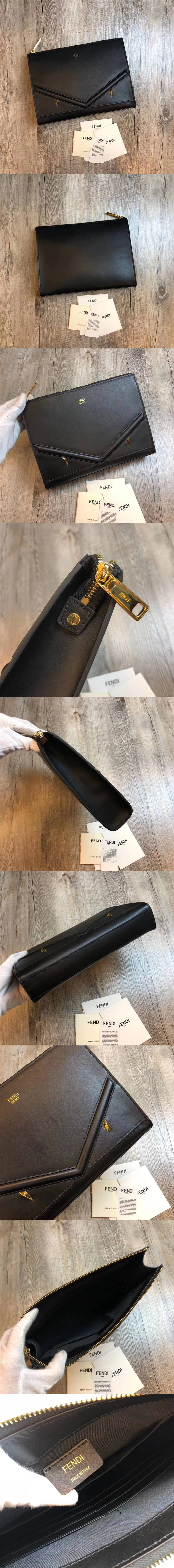 芬迪/Fendi 手包,采用小牛皮,飾有 Bag Bugs 眼睛形狀壓紋貼花,又一款超爆款來襲,超級有型,款號:7N0078【編號】7N0078#A359【顏色】黑色【尺寸】26cm(長)X20(高)X4(寬)【規格】Fendi燙印徽標金色五金配件棉麻裡襯1個平面口袋8個卡槽【附屬品】防塵袋