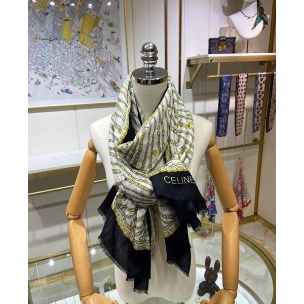 Celine最新款鏈條圖案長巾,特別有腔調,給人大牌氣場的同時又非常精致秀麗,上身效果簡直美翻瞭 質量非常完美!110*200cm,100%頂級羊絨