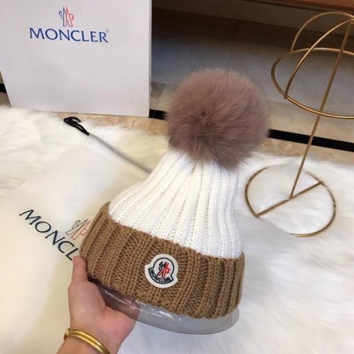 高仿Moncler新意拼色款,簡約大氣毛線針織帽,俏皮可愛狐貍毛球,保暖舒適,質量超好哦,非常減齡