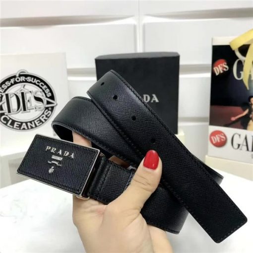 高仿普拉達Prada2020新款男士皮帶,真皮腰帶,配以新款LOGO板扣式帶扣腰帶為