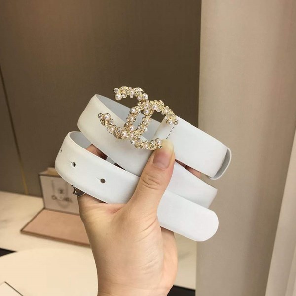 香奈兒Chanel官網新款時尚女士皮帶,小牛皮,LOGO珍珠黃銅扣,你值得擁有