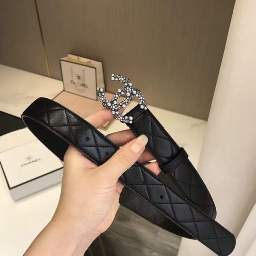高仿香奈兒Chanel官網新款時尚女士皮帶,小牛皮,LOGO珍珠黃銅扣,你值得擁有