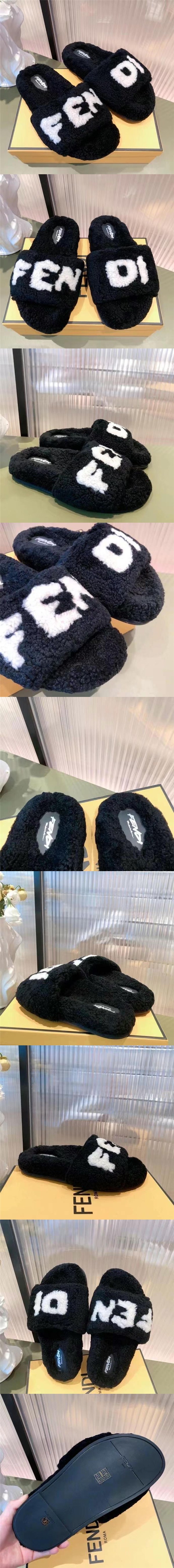 Fendi最新款羊羔毛拖鞋,鞋面是柔軟的羊羔毛,上腳超舒適,潮妞必備單品!Size:35-42#4024