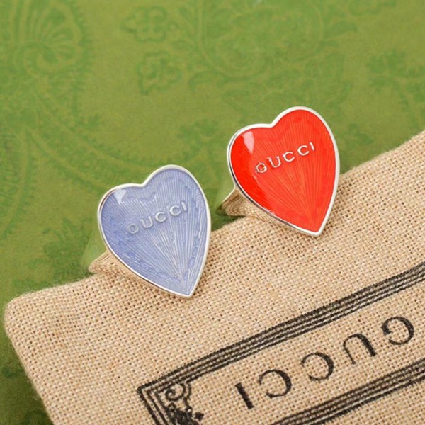 Gucci琺瑯愛心戒指,采用純銀精制而成,匠心搭配鏤空效果的標識細節,以紋理精心點綴,探索趣味新設計的主題,保色程度更久,上手超顯白!