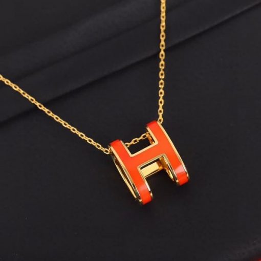 Hermes橙色,常規號pop漆藝琺瑯弧形H項鏈,整件純CNC機車,角度幹凈利落,項鏈約40cm,專櫃版本鏈子沒有調節扣