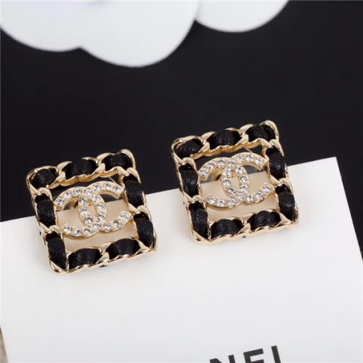 高仿Chanel穿皮滿鉆雙C耳釘,非常贊的一款,一致ZP黃銅材質,顆顆施華洛世奇鉆?小牛皮,上耳超好看