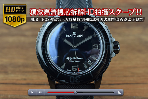寶柏Blancpain(ZF工廠-此款需預定)Fifty Fathoms五十噚系列 PVD塗層表殼-尼龍表帶 裝載1315型自動機芯 系列 Fifty Fathoms尺寸 表殼直徑45mm x厚度16mm機芯 精仿1315型自動機械機芯功能 時針、分針、中心大秒針、日期(4點位窗式顯示)表殼 316L不銹鋼拋光表殼-黑色PVD塗層工藝,表殼分為中框、表圈、背蓋組成表圈 316L不銹鋼底座-黑色PVD塗層工藝,嵌入藍寶石表圈玻璃材質 弧形透明抗磨損藍寶石玻璃表盤 黑色面盤、夜光顯示三角形以及數字時標表帶 黑色尼龍表帶、針式扣後蓋 不銹鋼背蓋、配備藍寶石玻璃的透視設計表冠 鎖入式表冠是否防水 生活防水