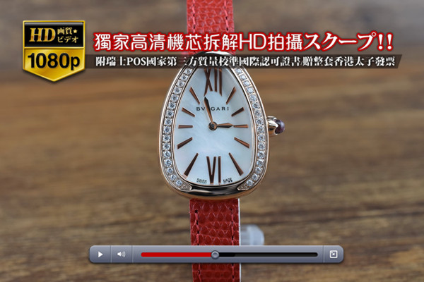 Bvlgari寶格麗(ZL廠-女表)Serpenti系列蛇形腕表 玫瑰金表殼-鑲嵌水鉆表圈-裝載瑞士石英機芯 特點 Serpenti 尺寸 表殼直徑23mm x厚度10mm機芯 Swiss quartz movement功能 時針、分針表殼 316L不銹鋼拋光表殼-電鍍18k玫瑰金、三角形蛇形設計表殼表圈 CNC鑲嵌一圈水鉆-電鍍18k玫瑰金玻璃材質 透明藍寶石玻璃面盤 白色珍珠母面盤、羅馬數字時標表帶 紅色-蛇皮紋路真皮表帶、針式扣-電鍍18k玫瑰金後蓋 316L不銹鋼拋光工藝-電鍍18k玫瑰金、以4顆螺絲鎖入固定表冠 推拉式表冠是否防水 生活防水