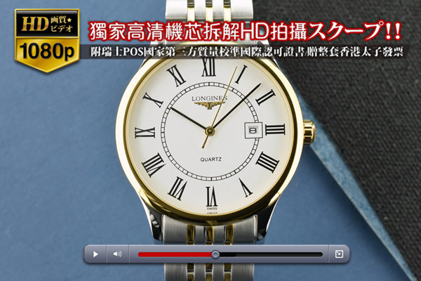 Longines浪琴(男表40mm)Record開創者系列腕表 不銹鋼材質-電鍍黃金-裝載日本石英機芯 系列 Record尺寸 表殼直徑40mm x厚度10mm機芯 Japanese quartz movement 功能 時針、分針、中心大秒針、日期(3點位窗式顯示)表殼 304型材不銹鋼材質表殼-拋光工藝,表殼分為中框、表圈、背蓋組成表圈 304型材不銹鋼材質-電鍍黃金玻璃材質 透明礦物玻璃面盤 白色面盤、黑色油印羅馬時標表帶 304型材不銹鋼材質鏈節表帶-中間部分電鍍黃金、精鋼折迭扣後蓋 壓入一體式-303型材不銹鋼材質表冠 推拉式表冠是否防水 生活防水