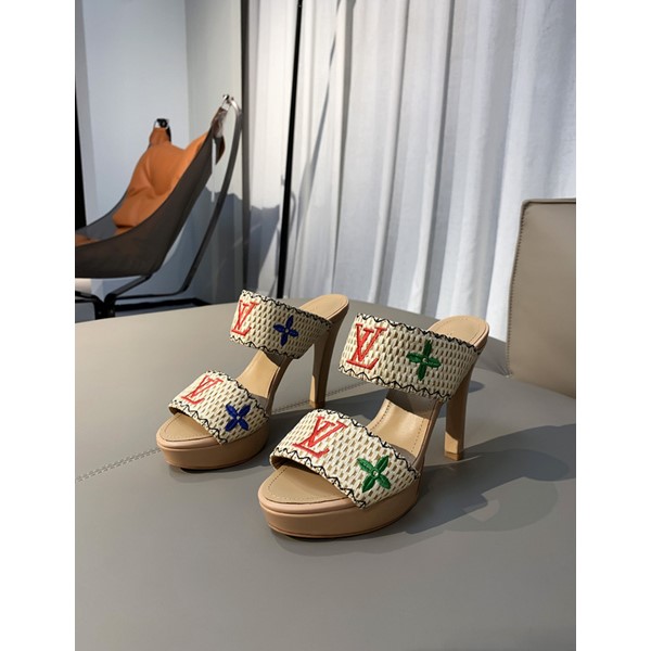 路易威登LV新款女士時尚休閑高跟涼拖鞋,上腳超舒服,非常好看個性款,跟高:10.5cm,水臺2.5cm