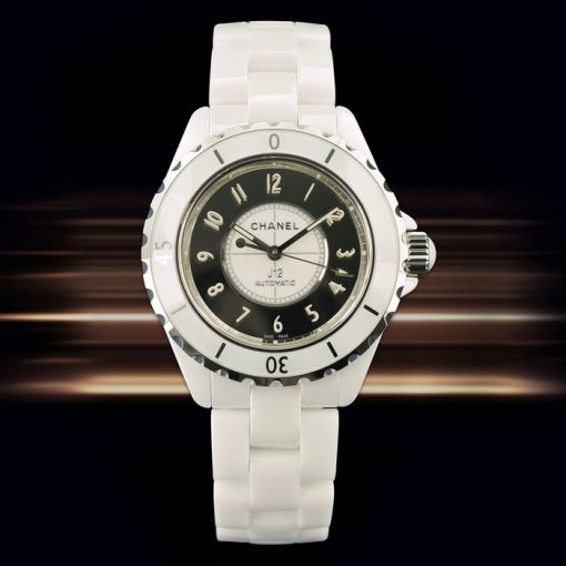 系列:J12尺寸:表殼直徑40mm x厚度11mm機芯:Asian 2892-2自動機械機芯、擺輪頻率:每小時28,800 次功能:時針、分針、中心大秒針表殼:高科技白色陶瓷材質,表殼分為中框、表圈、後蓋組成表圈:單向棘輪旋轉、不銹鋼底座-嵌入藍寶石玻璃表圈玻璃材質:透明抗磨損藍寶石玻璃面盤:黑色面盤、白色阿拉伯數字時標表帶:高科技白色陶瓷材質、三排鏈節後蓋:不銹鋼材質-磨砂工藝、以8顆螺絲鎖緊表冠:鎖入式表冠是否防水:生活防水