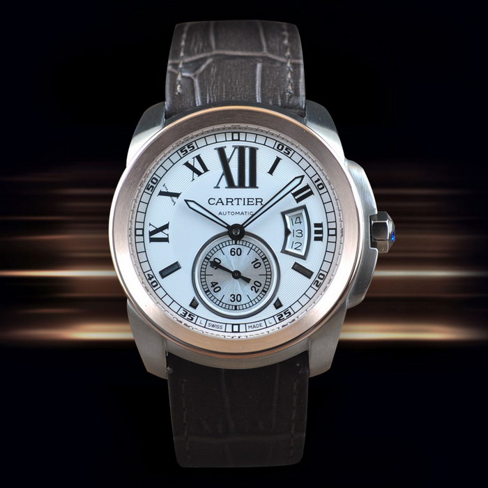 系列:Calibre de Cartier尺寸:表殼直徑42mm x厚度11.5mm機芯:Asian sea-gull ST自動機械機芯、擺輪頻率:每小時21,600次功能:時針、分針、秒針(6點位小盤)、日期(3點位窗式顯示)表殼:304型材不銹鋼磨砂表殼,表殼分為中框、表圈、背蓋組成表圈:304型材不銹鋼-磨砂工藝-電鍍玫瑰金面盤:白色面盤、黑色羅馬數字時標表帶:棕色皮質表帶、不銹鋼折迭扣後蓋:316L不銹鋼材質與透明玻璃、以8顆螺絲鎖入固定表冠:推拉式玻璃材質:透明礦物玻璃是否防水:生活防水