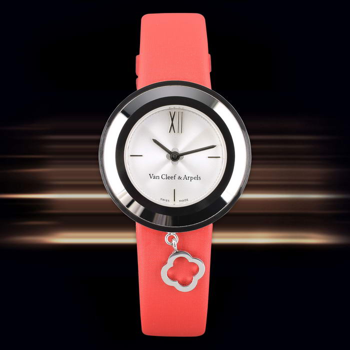 Charms腕表系列精巧細致,充滿趣味,為Van Cleef & Arpels梵克雅寶的經典傑作之一。腕表造型圓潤,飾以可隨手腕動作而轉動的幸運吊飾。此系列采用不同的材質制作,展現世傢精湛的珠寶工藝。系列:Charms尺寸:表殼直徑32m x 厚度7mm機芯:瑞士RONDA石英機芯功能:時針、分針表殼:316L型材不銹鋼材質,表殼分為中框、表圈、背蓋組成表圈:316L型材不銹鋼材質面盤:白色表盤,3-6-9-12不銹鋼時標表帶:紅色緞質表帶、精鋼針式扣後蓋:316L型材不銹鋼材質-以4顆螺絲鎖入固定表冠:推拉式玻璃材質:透明抗磨損藍寶石玻璃是否防水:生活防水