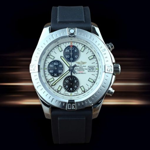 系列:Avenger尺寸:表殼直徑44m x 厚度15mm機芯:Asian 7750 25J計時碼表自動機械機芯、擺輪頻率:每小時28,800 次功能:時針、分針、小秒針(9點位)、日期/星期(3點位窗式顯示)、30分鐘計時-12點位小秒、12小時計時-6點位小秒表殼:316L型材不銹鋼材質,表殼分為中框、表圈、背蓋組成表圈:單向棘輪式表圈-316L型材不銹鋼材質面盤:白色表盤,小時時標覆蓋夜光塗層表帶:黑色橡膠表帶、精鋼針式扣後蓋:旋轉擰緊、不銹鋼材質-拋光工藝表冠:旋轉擰緊、雙密封膠墊玻璃材質:弧形透明抗磨損藍寶石玻璃是否防水:生活防水