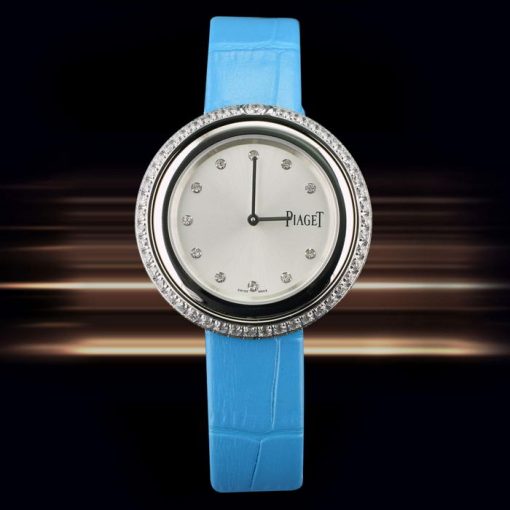 系列:Possession尺寸:表殼直徑34m x 厚度7.5mm機芯:瑞士石英機芯(後蓋中間按壓按鈕調節時間)功能:時針、分針表殼:316L不銹鋼表殼-拋光工藝,表殼分為中框、表圈、後蓋組成表圈:316L不銹鋼材質、雙表圈設計、外表圈可以雙向旋轉-鑲嵌一圈鋯石面盤:銀色太陽紋面盤、鉆石時標表帶:藍色真皮表帶、不銹鋼針式扣、易拆生耳後蓋:316L不銹鋼材質-拋光工藝、以4顆螺絲鎖入固定表冠:推拉式玻璃材質:透明抗磨損藍寶石玻璃是否防水:生活防水
