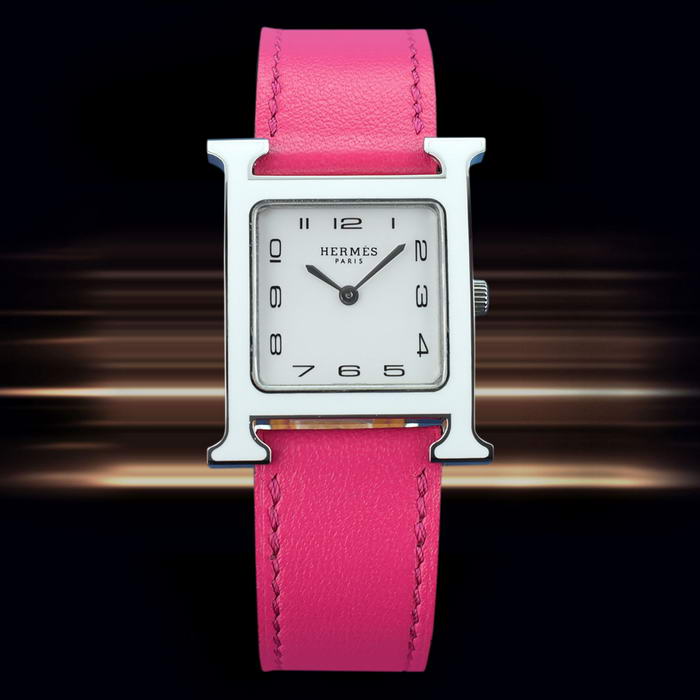 系列:H-Hour尺寸:表殼直徑26mm x 高35mm x 厚度7mm機芯:瑞士RONDA石英機芯功能:時針、分針表殼:經典的H型表殼,316L不銹鋼材質-拋光工藝表圈:H型表圈填充琺瑯材質並拋光打磨面盤:白色面盤、黑色阿拉伯數字時標表帶:玫紅色真皮表帶、精鋼針式扣後蓋:316L不銹鋼材質-拋光工藝、以6顆不銹鋼螺絲鎖入固定表冠:推拉式玻璃材質:透明抗磨損藍寶石玻璃是否防水:生活防水