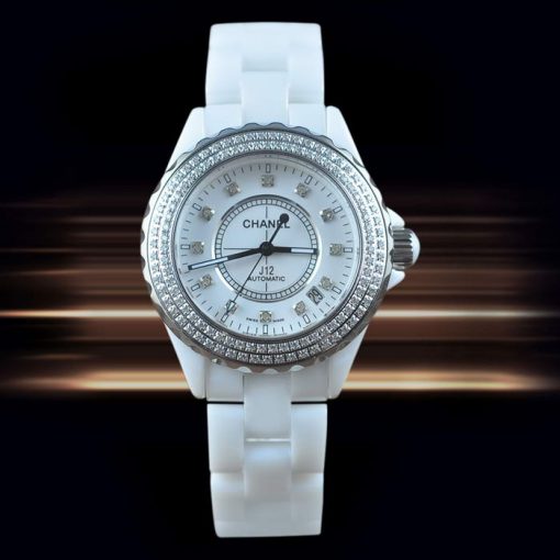 系列:J12尺寸:表殼直徑39mm x 厚度13mm機芯:Asian 2836-2 25J自動機械機芯,擺輪頻率:每小時28,800轉功能:時針、分針、秒針、日歷(4點位窗口顯示)表殼:高科技精密白色陶瓷,表殼分為中框、表圈、背蓋組成表圈:單向棘輪旋轉不銹鋼底座-CNC鑲嵌2圈鋯石面盤:搪瓷白色面盤、鉆石時標表帶:高科技精密白色陶瓷、不銹鋼彈力折迭扣後蓋:316L不銹鋼材質-磨砂工藝表冠:旋入鎖緊玻璃材質:透明抗磨損藍寶石玻璃是否防水:生活防水