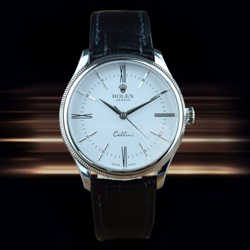 系列:Cellini尺寸:表殼直徑39mm x厚度11.5mm機芯:3132型自動機械機芯基礎機芯:Asian 2824-2 25J自動機械機芯、擺輪頻率:每小時28,800次功能:時針、分針、中心大秒針表殼:316L不銹鋼拋光表殼,表殼分為中框、表圈、背蓋組成表圈:316L不銹鋼-圓拱形三角坑紋雙外圈面盤:白色表盤、黑色羅馬數字與不銹鋼時標表帶:黑色真皮表帶、不銹鋼針式扣後蓋:旋入鎖緊-316L型材精鋼材質表冠:鎖入式表冠玻璃材質:抗刮損藍寶石水晶是否防水:生活防水