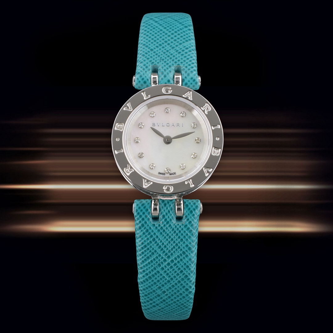 系列:B.zero1尺寸:表殼直徑23mm x 厚度10mm機芯:瑞士RONDA石英機芯功能:時針、分針表殼:316L不銹鋼材質-拋光工藝、由表圈-不銹鋼中框-不銹鋼後蓋組成表圈:316L型材不銹鋼-BVLGARI標志雕刻表盤:白色珍珠母貝、鉆石時標表帶:孔雀綠色皮質表帶-手掌紋壓紋、不銹鋼針式扣後蓋:316L不銹鋼材質(品牌logo以及系打印記雕刻)表冠:後蓋隱藏式按壓調節玻璃材質:透明藍寶石玻璃是否防水:生活防水