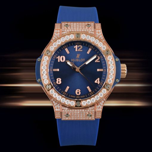 系列:Bigbang尺寸:表殼直徑36.5mm x 厚度12.7mm機芯:Japanese quartz movement功能:時針、分針、中心大秒針表殼:316L不銹鋼材質-電鍍玫瑰金-CNC鑲嵌鋯石,表殼分為中框、表圈、後蓋組成表圈:316L不銹鋼表圈-電鍍玫瑰金-CNC鑲嵌鋯石玻璃材質:透明抗磨損藍寶石玻璃面盤:藍色放射紋面盤、阿拉伯數字時標表帶:藍色橡膠表帶、玫瑰金折迭扣後蓋:316L不銹鋼後蓋-電鍍玫瑰金表冠:推拉式是否防水:生活防水