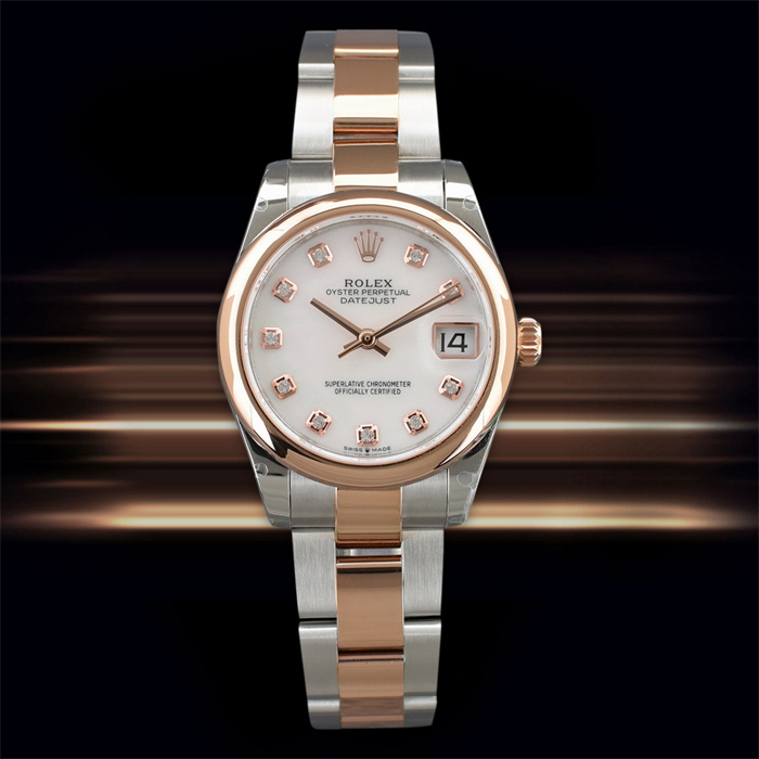 系列:Datejust 系列:Datejust尺寸:表殼直徑31mm x 厚度11.3mm機芯:Asian 2671 25J自動機械機芯、擺輪頻率:每小時28,800 次基本機能:時針、分針、中心大秒針、日歷(3點位窗口顯示)表殼:316L不銹鋼拋光表殼,表殼分為中框、表圈、背蓋組成表圈:圓拱形外圈-電鍍玫瑰金表帶:鏈節表帶、不銹鋼材質-中間電鍍玫瑰金玻璃材質:透明抗磨損藍寶石玻璃表盤:深灰色-放射紋、羅馬數字時標背蓋:旋入鎖緊、316L不銹鋼材質龍頭:鎖入式龍頭是否防水:生活防水