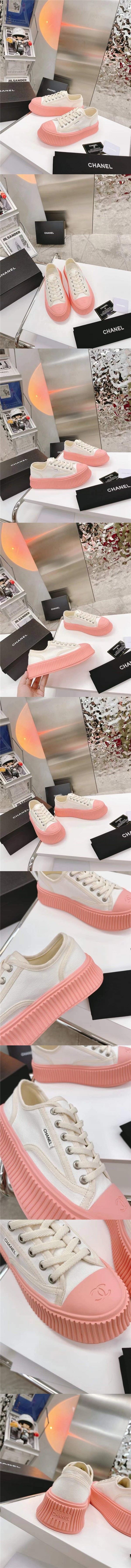 香奈兒Chanel時尚休閑厚底糖果色大底餅幹鞋,超級流行,蠢萌可愛的造型帶瞭點復古味,超清新可愛 造型特殊,很有辨識度,絕對實力派,穿上也很舒服,鞋面:訂制帆佈,墊腳/內裡:水染牛皮,高彈橡膠松糕大底,底厚:5cm#010